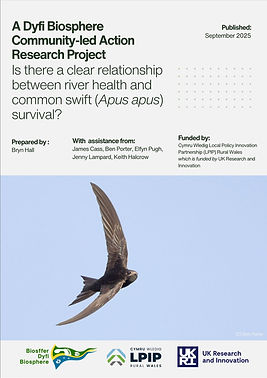 The research was carried out by two community groups: Lab Dŵr Dyffryn Dyfi and the Dyfi Biosphere Swifts Project in partnership with Biosffer Dyfi and funded by Cymru Wledig LPIP (Local Policy Innovation Partnerships) Rural Wales. Close partnership with New Dovey Fisheries Association was also a key factor for this projects success.